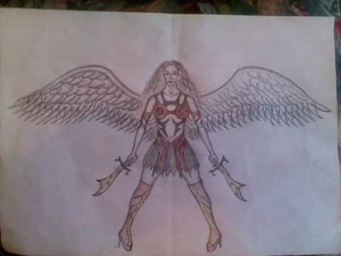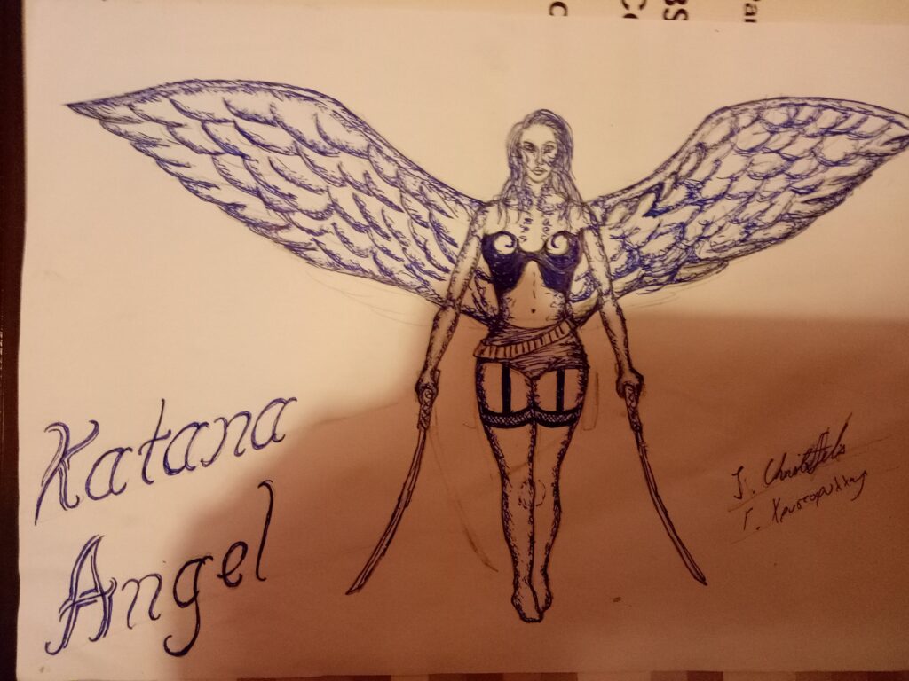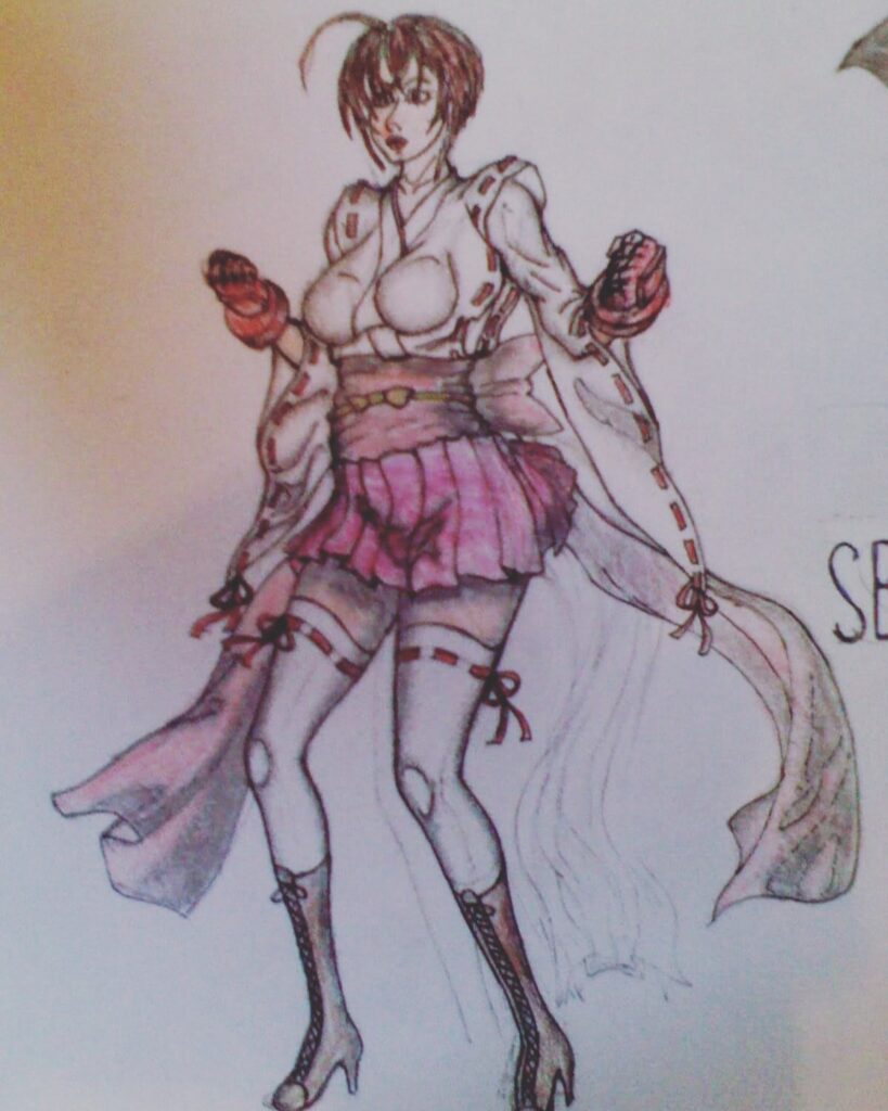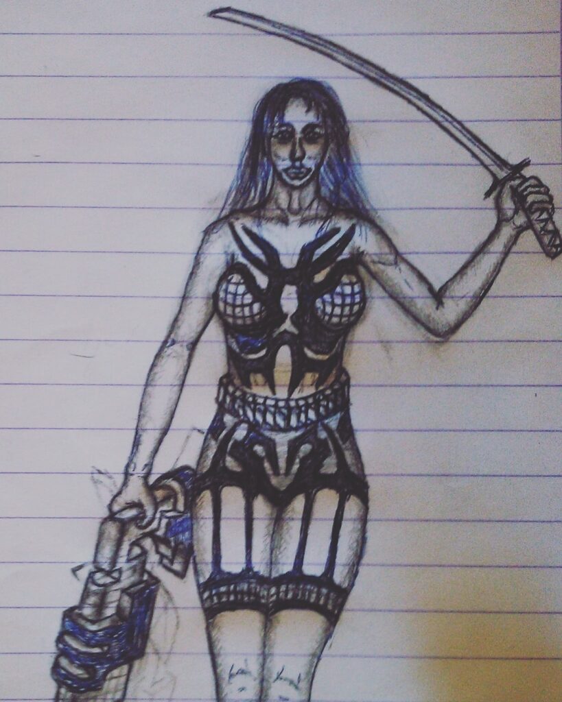 On the right: An example of art forged with perseverance and iron will, or rather, titanium will. This example is a portrayal of the character Nariko, from the Playstation video game, Heavenly Sword